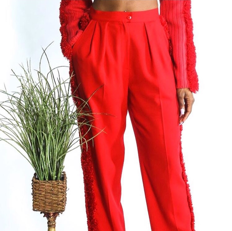Abigail recently debuted her collaborative capsule with, P67 last week titled “Lady in Red”. An 8 piece womens collection of vintage items, resigned for the modern closet. The collection is composed of a coat, 2 dresses, 2 pants, a blazer and a crop top.