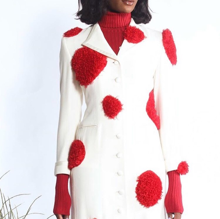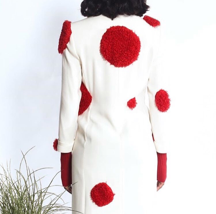 Abs: Lady in Red was put together by various pieces being brought together, to tell different parts to the same story. The lady is sexy but, she can be modest. She is influenced by both masculine and feminine. She does what she feels and so often times she is ‘marked’. Hence the strong vibrant red throughout the collection.